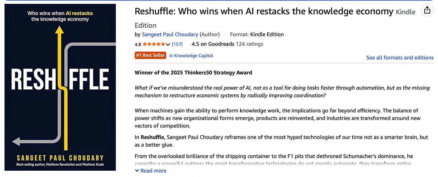 First: the biggest mistake is framing AI as automation vs. augmentation. That keeps you optimizing tasks while the system of work is being redesigned. Then there’s the containerization example that I use in Reshuffle: the dockworker didn’t lose to a better dockworker; the whole port’s logic changed.